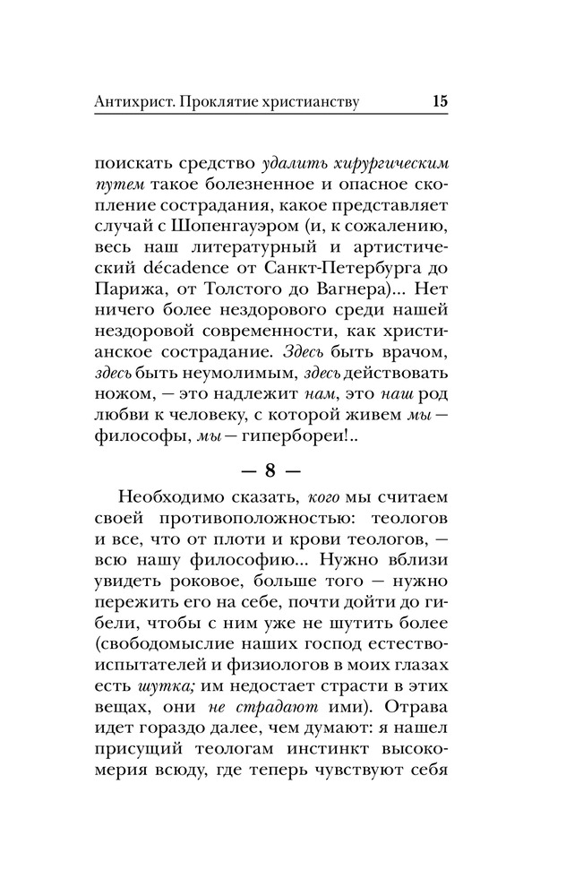 💳 Оплатить за товар можно при получении 🇰🇿 Есть бесплатная доставка по Казахстану от 1 дня 🎁 Копите бонусы с каждой покупки Серия: Фридрих Ницше (обложка) В сборнике представлены два произведения Фридриха Ницше — «Антихрист» и «Ecce Homo» — последние, написанные им до того, как безумие окончательно поглотило его разум. «Антихрист» — скандальная книга, где Ницше ставит под вопрос сущность христианства, книга-протест против выбранного церковью пути. «Ecce Homo» — набор автобиографических заметок, написанных, по словам Ницше, за месяц. |