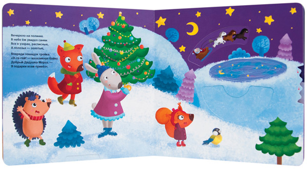 Эта волшебная книга станет отличным новогодним подарком для вашего малыша, ведь в ней так много сюрпризов! На страницах с колесиками, движущимися элементами и окошками оживает чудесная новогодняя история о зверушках, которые наряжают елку. |