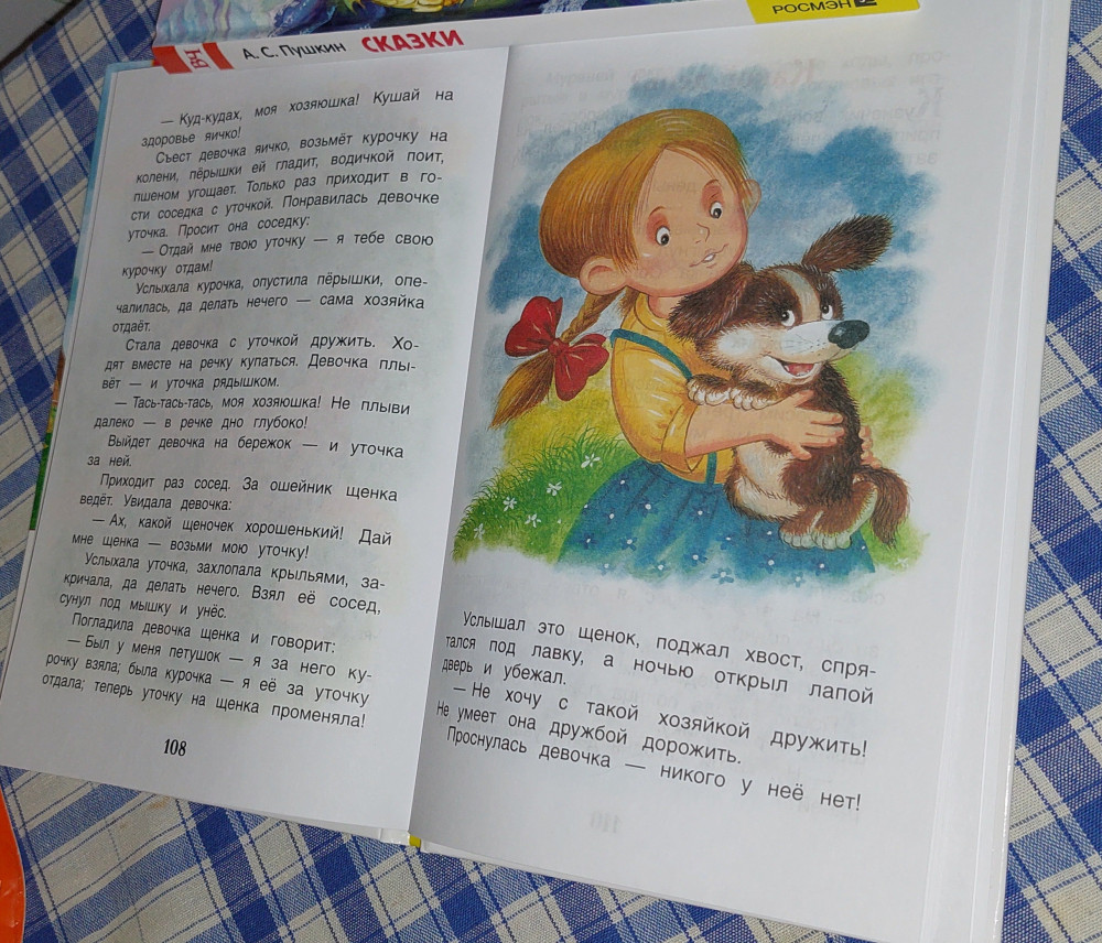 Только после покупки заметила, что есть отметка "произведения без сокращений". Это очень важно. Картинки на каждой странице, шрифт средний. Коротенькие рассказы, которые очень интересны по замыслу. Твердый переплет. Хорошее приобретение для детей любящих книжки