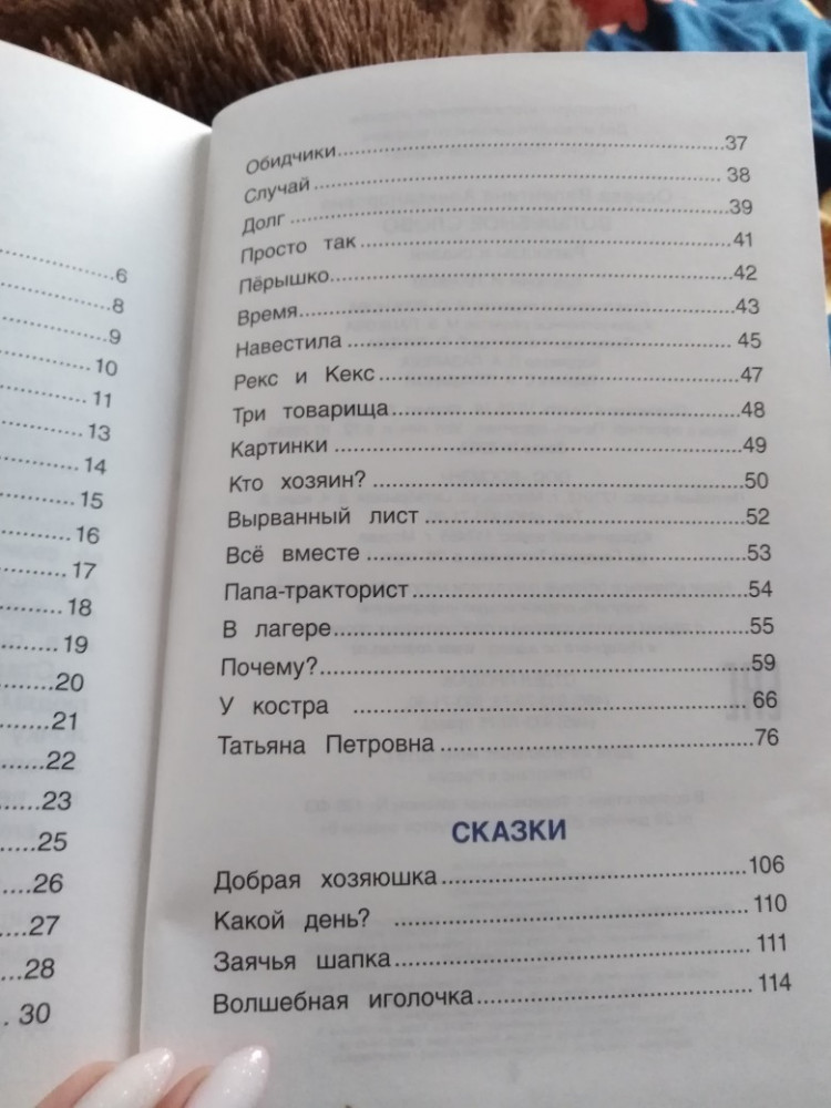 Книжка на "5 звезд"! Хорошие рассказы, поучительные! Иллюстрации яркие к каждому тексту. Небольшой минус это шрифт, для первого самостоятельного чтения я считаю мелко. В целом книгой довольна!