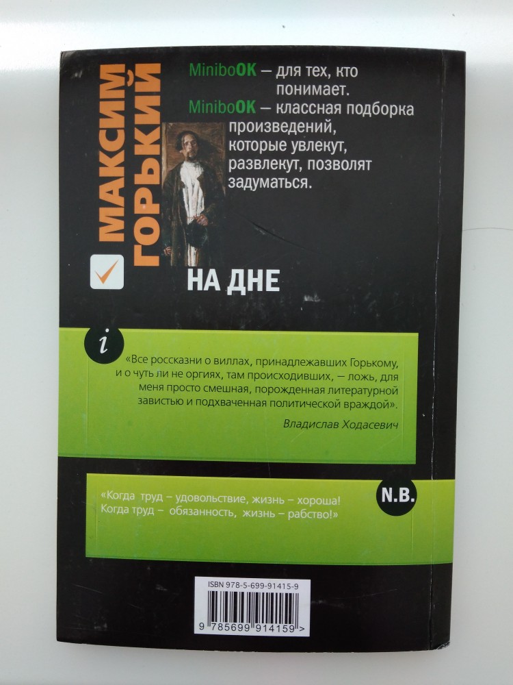 На днеВ данный момент этот товар отсутствует в продаже. Возможно, у нас найдется аналогичный или похожий товар здесь. Серия: Minibook Знаменитая пьеса М. Горького «На дне», остро и злободневно поставившая вопрос об отношении к человеку: «Человек — это звучит гордо!» или «Человека жалеть нужно», — включена в книгу. А выбор всегда за каждым из нас... |