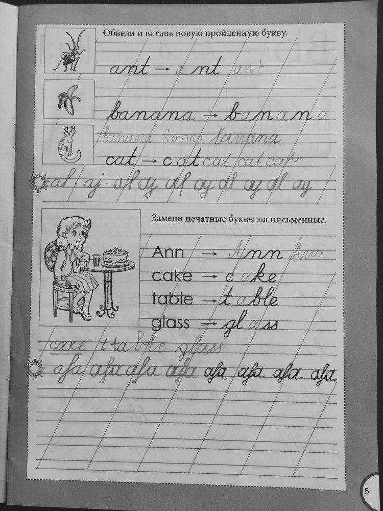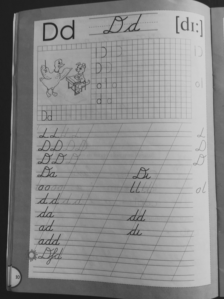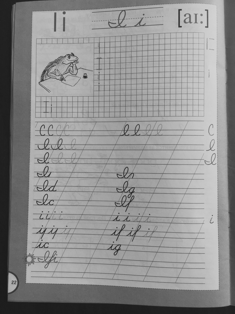 Пропись выбирала очень долго и придирчиво, сама училась в то время, когда нас учили прописному английскому. Она оказалась очень понятной и правильной. Все подано в интересной игровой форме, для начала занятия английским, она не подойдет, нужно все-таки иметь первоначальный словарный запас. Покупала сразу 2 части.