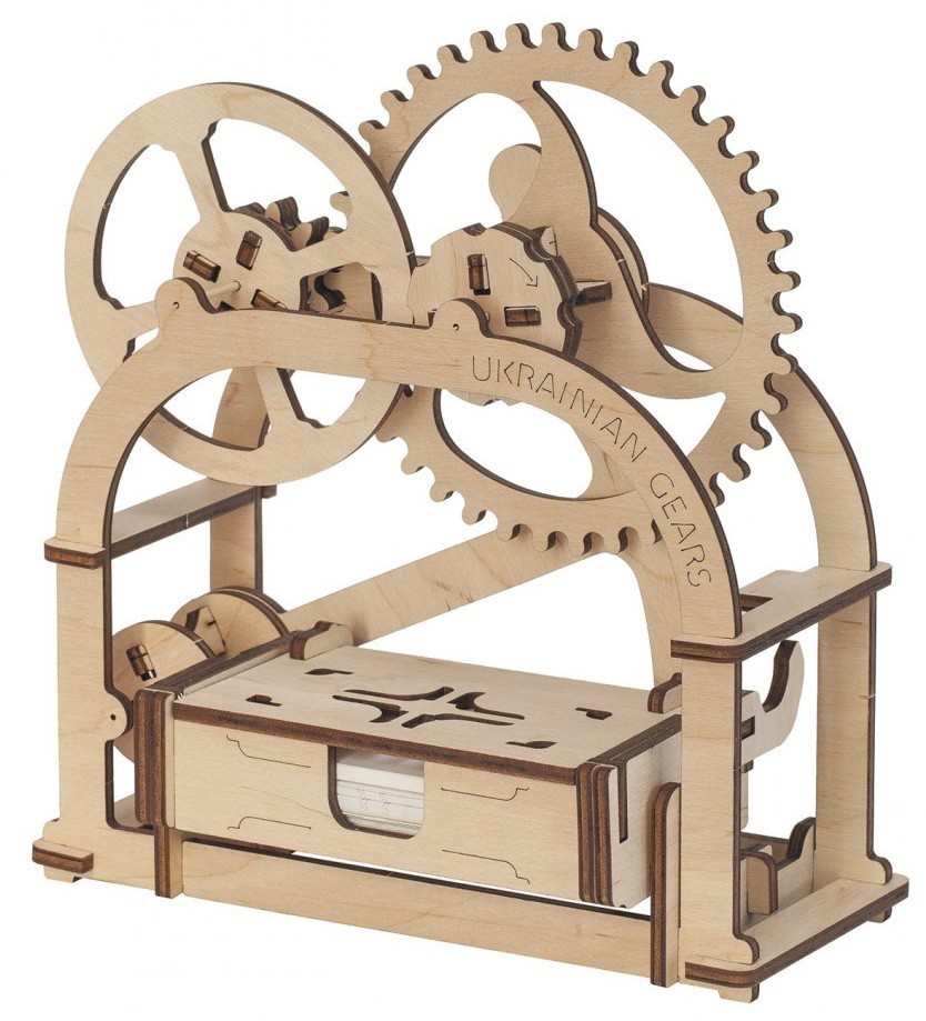UGEARS Модель для самостоятельной сборки без клея «Механическая Шкатулка»В данный момент этот товар отсутствует в продаже. Возможно, у нас найдется аналогичный или похожий товар здесь. 3D-пазл «Механическая Шкатулка» представляет собой модель для самостоятельной сборки. В готовом виде пазл имеет подвижные части, так как собирается без использования клея. Собранная конструкции представляют собой механическую шкатулку. После сборки её можно использовать по прямому назначению и хранить в ней мелкие предметы, или разместить на рабочем столе в качестве оригинальной визитницы. Чтобы открыть коробочку необходимо привести в движение шестерёнки. |