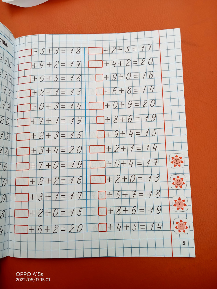 💳 Оплатить за товар можно при получении 🇰🇿 Есть бесплатная доставка по Казахстану от 1 дня 🎁 Копите бонусы с каждой покупки Серия: Мини-тренажер Это учебное пособие будет способствовать эффективному изучению математики в 1-м классе. В простой и доступной форме оно позволит развить, закрепить и проверить ключевые навыки ребёнка по самым важным темам изучаемого предмета. Специально подобранные примеры помогут не только овладеть простейшими арифметическими действиями сложения и вычитания в пределах 20, но и научат правильно оформлять математические решения. Все задания чётко сформированы и систематизированы в пределах одного разворота. Выполненную на каждой странице работу ребёнок может самостоятельно оценить — обвести на полях солнышко с соответствующей оценкой. |