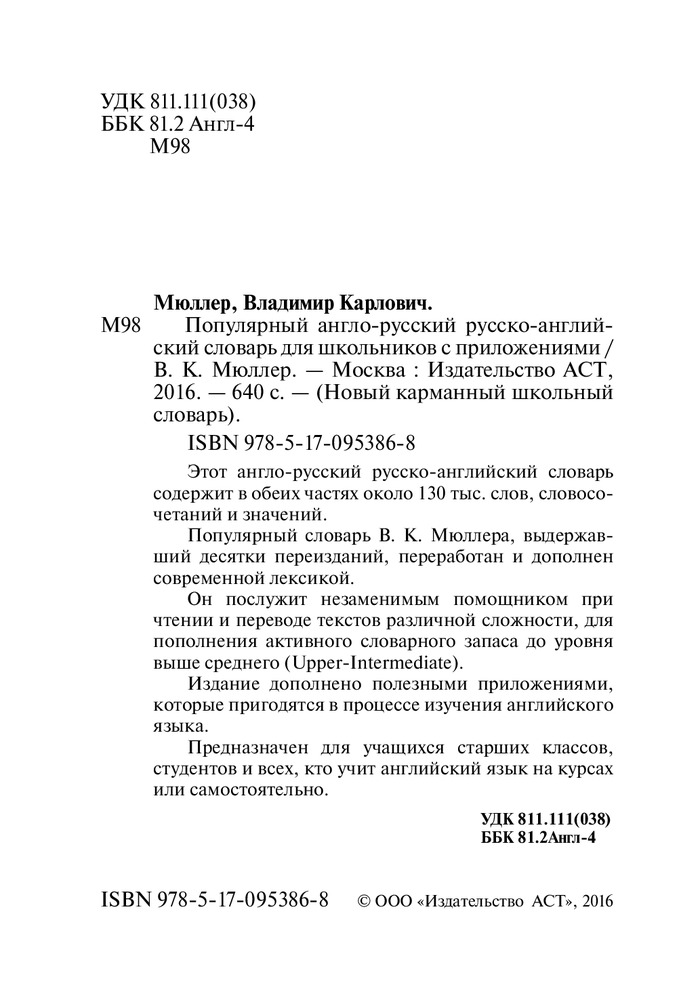 💳 Оплатить за товар можно при получении 🇰🇿 Есть бесплатная доставка по Казахстану от 1 дня 🎁 Копите бонусы с каждой покупки Серия: Новый карманный школьный словарь Этот англо-русский русско-английский словарь содержит в обеих частях около 130 тыс. слов, словосочетаний и значений. |