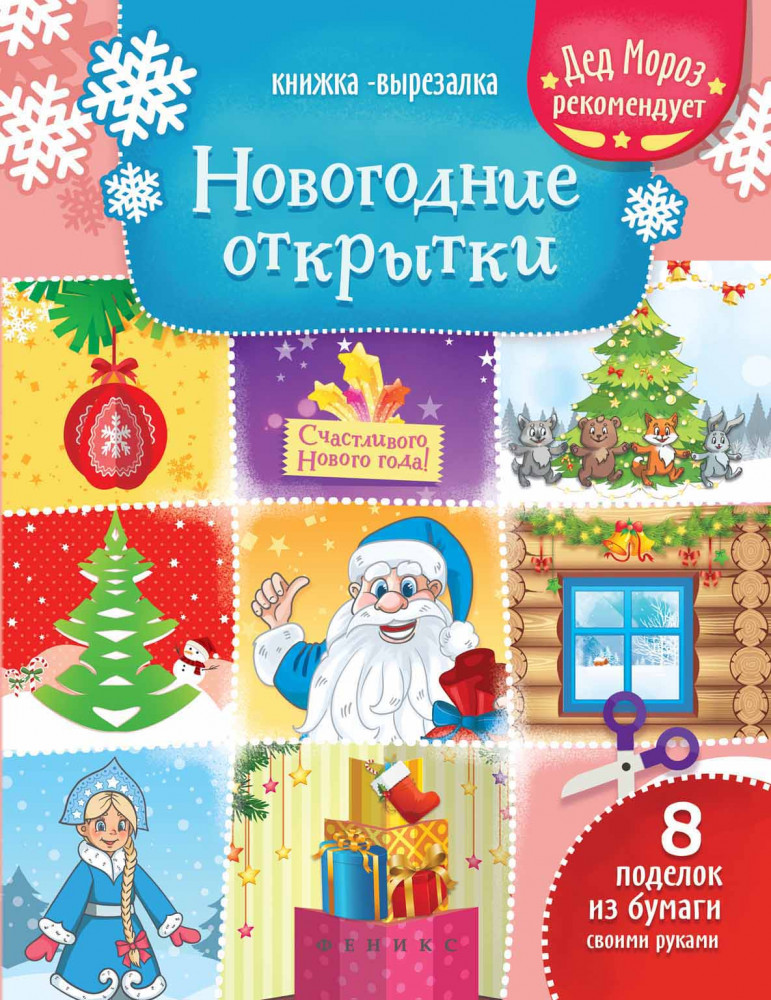 Что такое Новый год? Это красивая ёлка, долгожданные подарки и, конечно, новогодние поделки... в садик, любимым бабушкам и дедушкам, дядям и тётям. С книжкой-вырезалкой «Новогодние открытки» вы точно всё успеете. В комплект входят: шаблоны для вырезания 8-ми поделок и инструкции по сборке. Вам понадобятся только ножницы и клей.