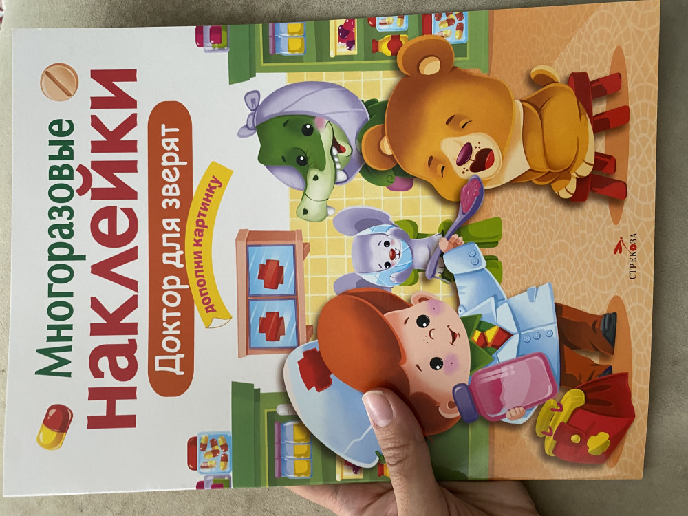 💳 Оплатить за товар можно при получении 🇰🇿 Есть бесплатная доставка по Казахстану от 1 дня 🎁 Копите бонусы с каждой покупки Серия: Многоразовые наклейки Наш необычный доктор приглашает вашего малыша в свою звериную клинику. Лечите зверюшек — проверяйте зрение, накладывайте повязки, ставьте горчичники. А может кто-то не побоится вырвать больной зуб? Открывайте скорее книжку и приклеивайте картинки на странички! |