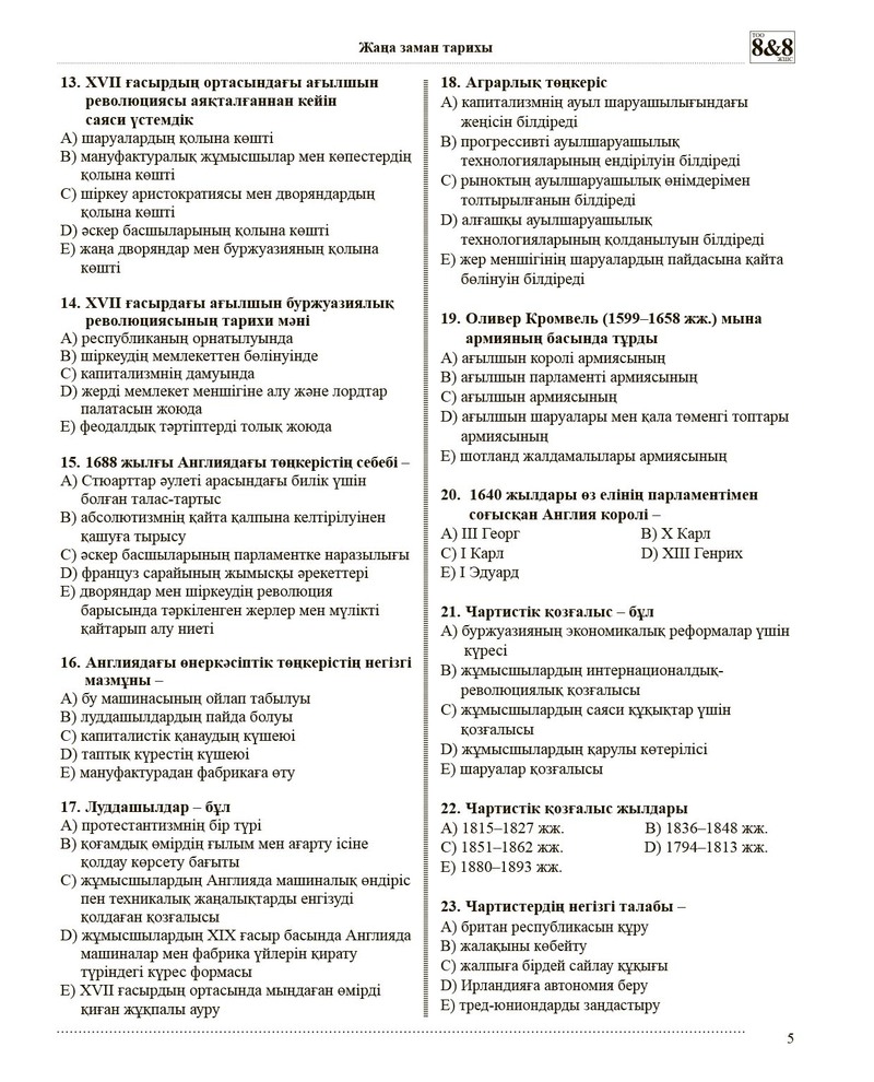 Бұл құралдар топтамасында мектеп бағдарламасында көзделген ежелгі заманнан ХХІ ғасырдың бас кезіне дейінгі дүниежүзі тарихының барлық кезеңдері ашып көрсетілген. Әрбірінде 25–50 сұрақтан бар 53 тақырыпқа біріктірілген 1700 тест тапсырмасы қамтылған. Материалдарды жинақтау барысында Білім беру мен тестілеудің МСҰО 2008–2010 жылдары шығарған «Дүниежүзі тарихы бойынша тест тапсырмаларының жинақтарына» талдау жасалды. Талдау жұмыстары жоғарыда аталған жинақтардағы тест тапсырмалары Қазақстан Республикасы Білім және ғылым министрлігінің жалпы білім беретін мектептер үшін ұсынылған оқулықтардың шегінен шығып кететінін көрсетті.