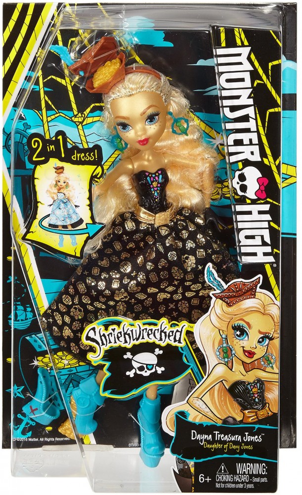 Mattel. Inc. Кукла Monster High «Кораблекрушение» Дана ДжонсВ данный момент этот товар отсутствует в продаже. Возможно, у нас найдется аналогичный или похожий товар здесь. Серия: Monster High Волосы пшеничного цвета Даны Джонс аккуратно собраны назад, прическа увенчана миниатюрной шапочкой с секретом, которая, хранит в себе золотые монетки. На ножках надеты голубые ботиночки на каблуке, скрывающем в себе еще один золотой клад. Дана целиком оправдывает свое второе имя - Трежура - она в прямом смысле вся драгоценная: от макушки до кончиков пальцев. Ее кожа также имеет ярко-золотистый оттенок, подчеркивающий голубизну ее глаз. На руках Даны надеты черные перчатки. Она носит шикарные украшения: золотую цепочку с компасом на шее и серьги с кольцом. |