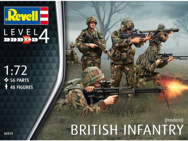 В данный момент этот товар отсутствует в продаже. Возможно, у нас найдется аналогичный или похожий товар здесь. Сборная модель «Современная британская пехота» в масштабе 1:72 от компании Revell. В комплект входят 48 фигурок солдат и 56 элементов, из которых можно собрать небольшой участок военного пейзажа с соответствующим антуражем. Все детали тщательно прорисованы, изготовлены из прочного материала и качественно окрашены. Игра развивает аналитическое мышление и тактику ведения боя.