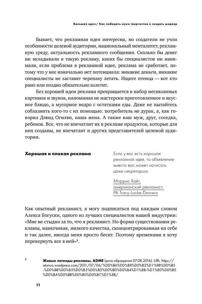 На примере хорошо знакомых всем кампаний Светлана показывает, как организовать работу творческой команды, как взаимодействовать с клиентом и как найти и реализовать ту самую Большую идею, которая изменит все: вашу карьеру, судьбу рекламируемого продукта, рекламную индустрию…