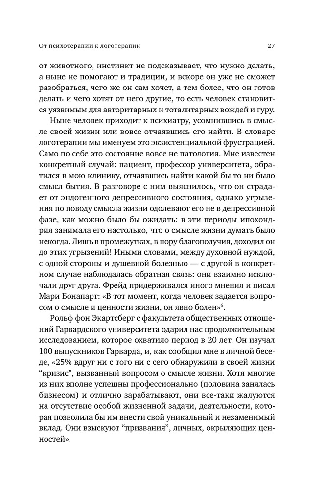💳 Оплатить за товар можно при получении 🇰🇿 Есть бесплатная доставка по Казахстану от 1 дня 🎁 Копите бонусы с каждой покупки В чем секрет исцеления, когда речь идет о душе человека? В фигуре психотерапевта, в правильно подобранной технике или лекарстве, в желании самого больного? Где проходит грань между медициной и философией в этих сложных вопросах? Эта книга — главный научный труд Виктора Франкла, первый вариант которого он написал еще перед депортацией в концентрационный лагерь. Исследуя концептуальные и эмпирические подходы в психиатрии, Франкл дополняет понимание души понятием духа как ядра личности, которое остается сохранным в любой болезни, показывает роль экзистенциального анализа в лечении душевных расстройств — от неврозов и депрессии до шизофренических психозов. Пациент обращается к психиатру, отчаявшись в поисках цели и смысла жизни. И в этом поиске Франкл видит основное стремление и важнейшую задачу человека, именно на нем строит свой метод (логотерапию), помогающий понять, обрести, вернуть смыслы — смысл жизни, страдания, работы и любви. |