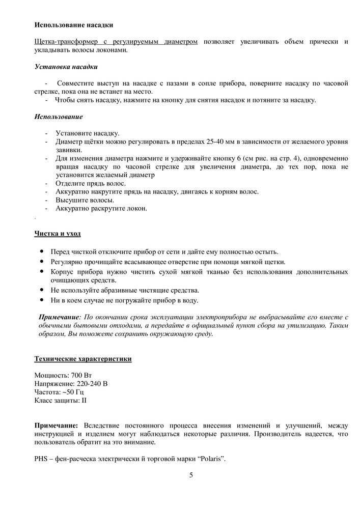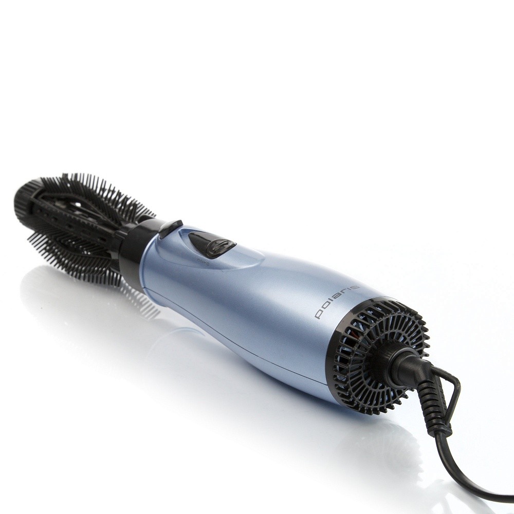Фен-расческа с круглой насадкой, которая представляет собой щетку регулируемого диаметра и позволяет моделировать волосы любой длины, придавая прически необходимый объем и пышность. Предусмотрены три температурных режима и три режима мощности, а также автоматическая защита от перегрева. Фен можно подвесить в удобном месте с помощью специально предназначенной петли. В наличии модели двух цветов: красного и синего.