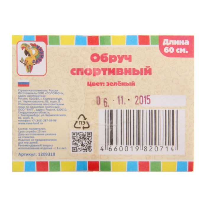 Забияка Обруч, диаметр 60 см-25% +53 легкий плотный пластик малый диаметр неаккуратная сборка