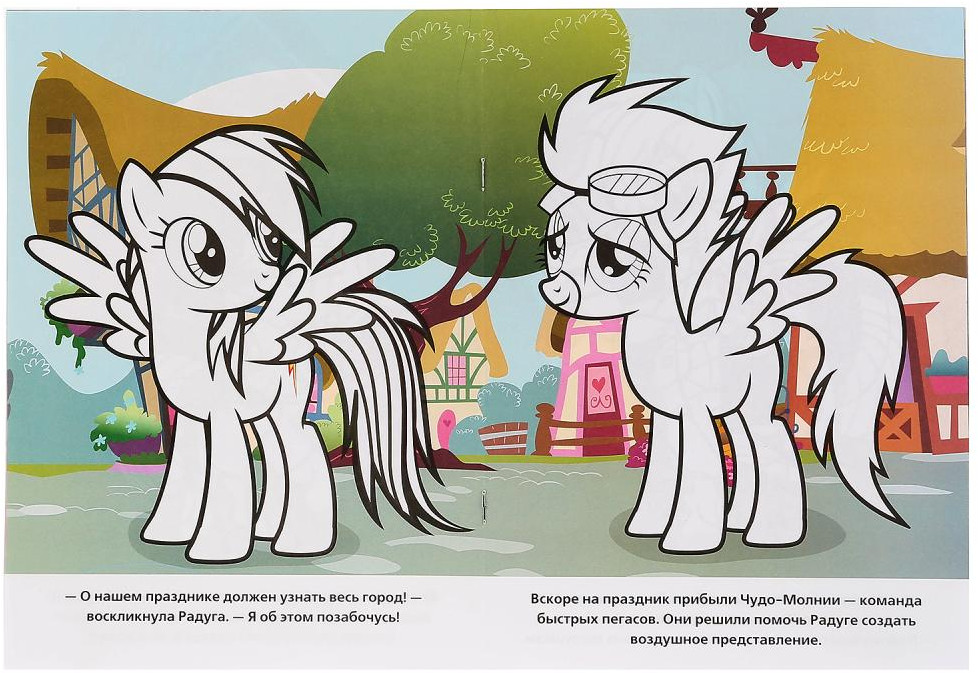 Хорошее качество, яркая, фон раскрашен, необходимо раскрасить только пони. Для любителей пони отлично.