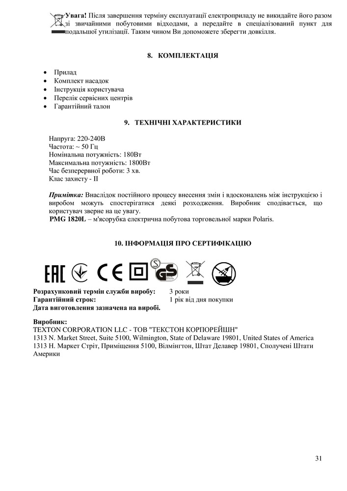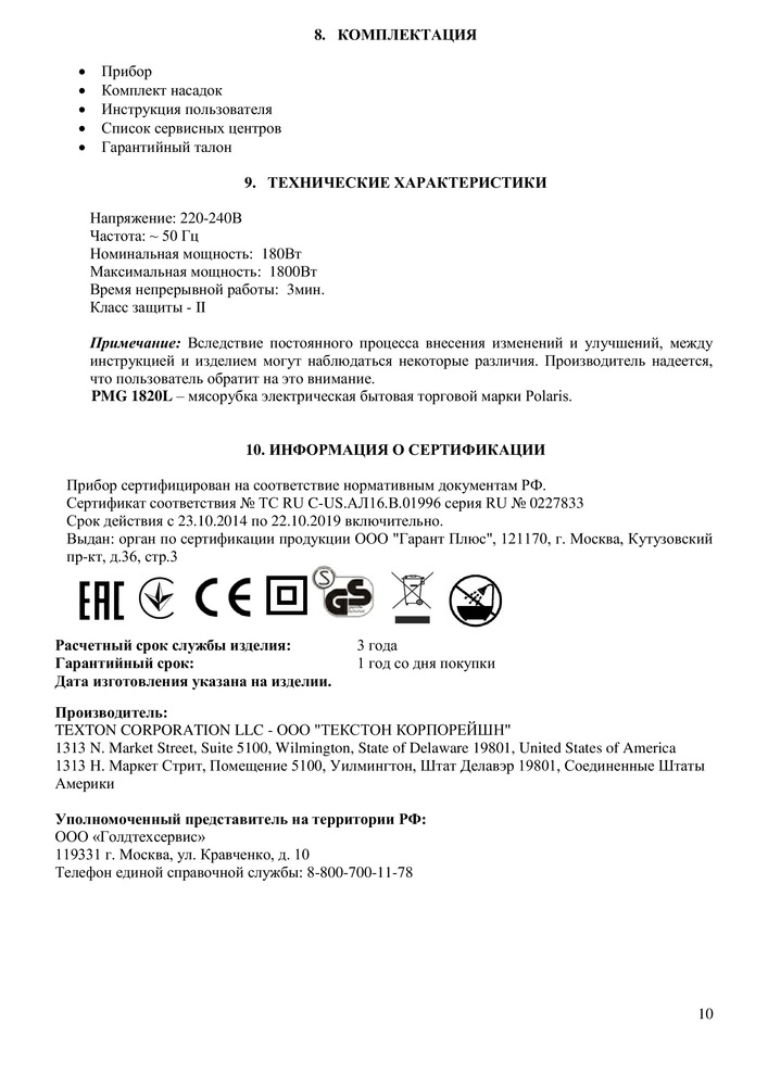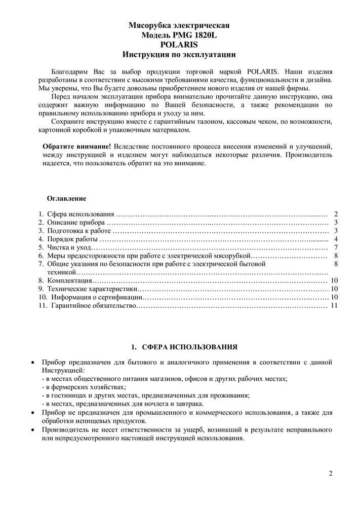 Мясорубка POLARIS PMG 1820L - с помощью данной мясорубки можно быстро приготовить необходимое количество фарша из сырого или вареного мяса, птицы, рыбы. Насадки, входящие в комплект, порадуют разнообразием возможностей самых требовательных поваров.