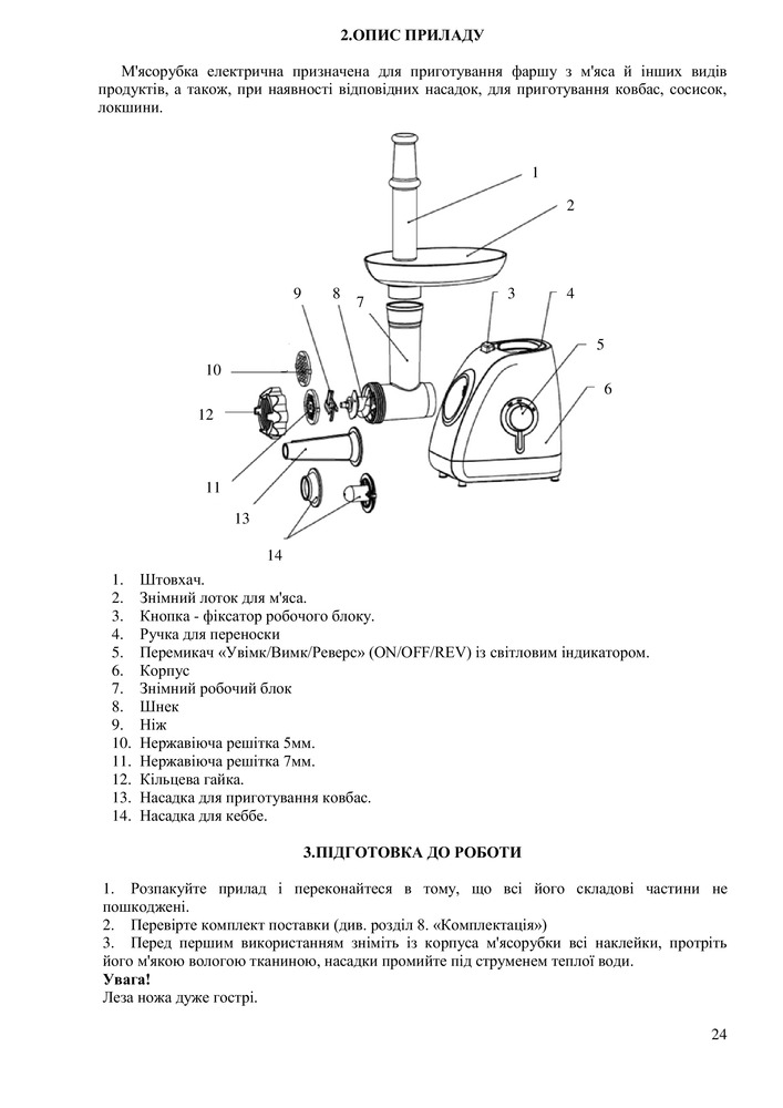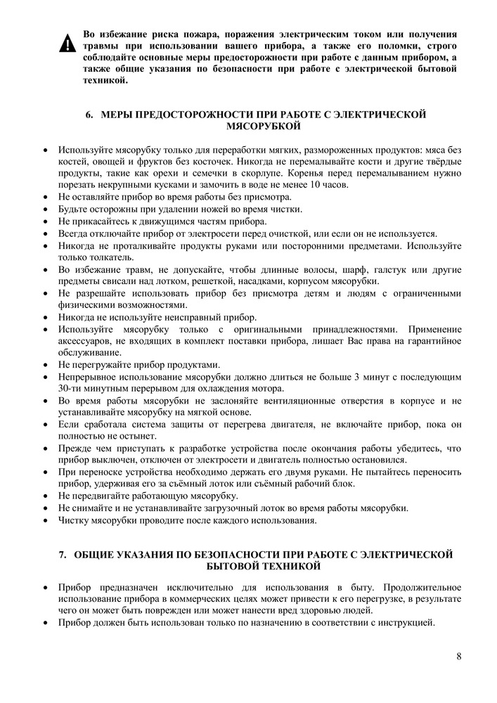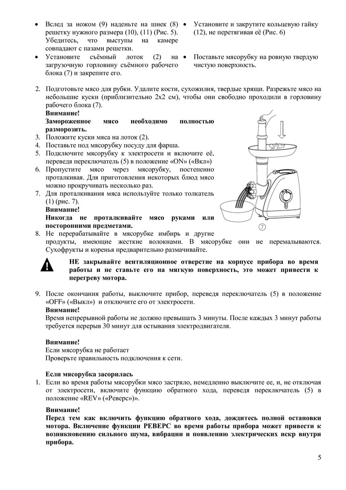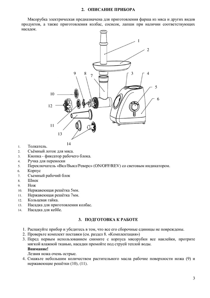 • Металлический мясоприемник и шнек