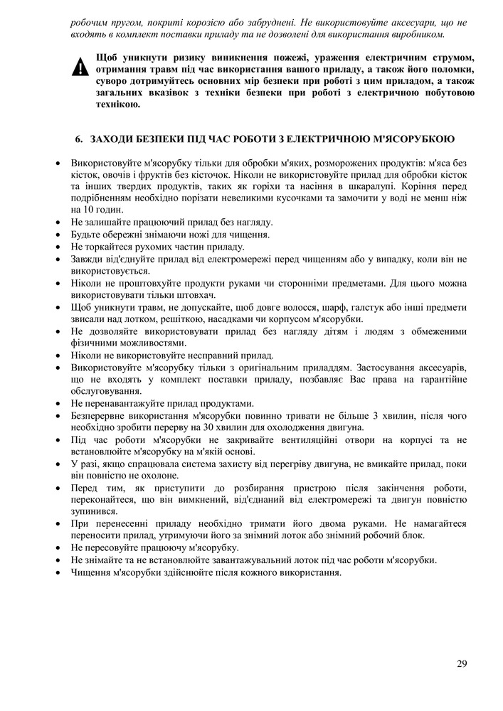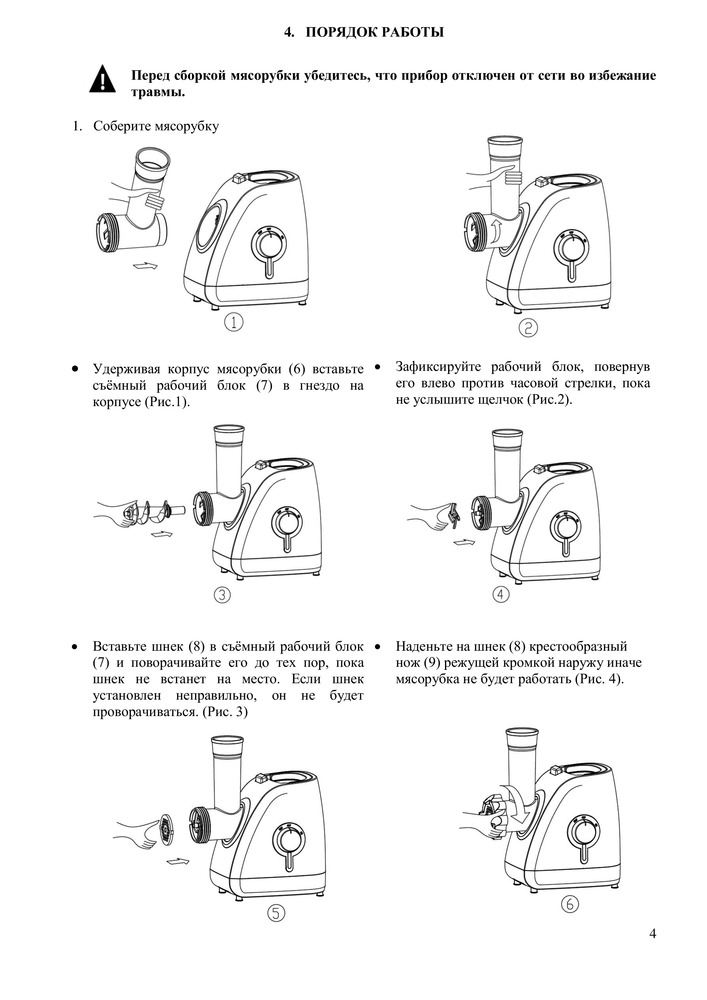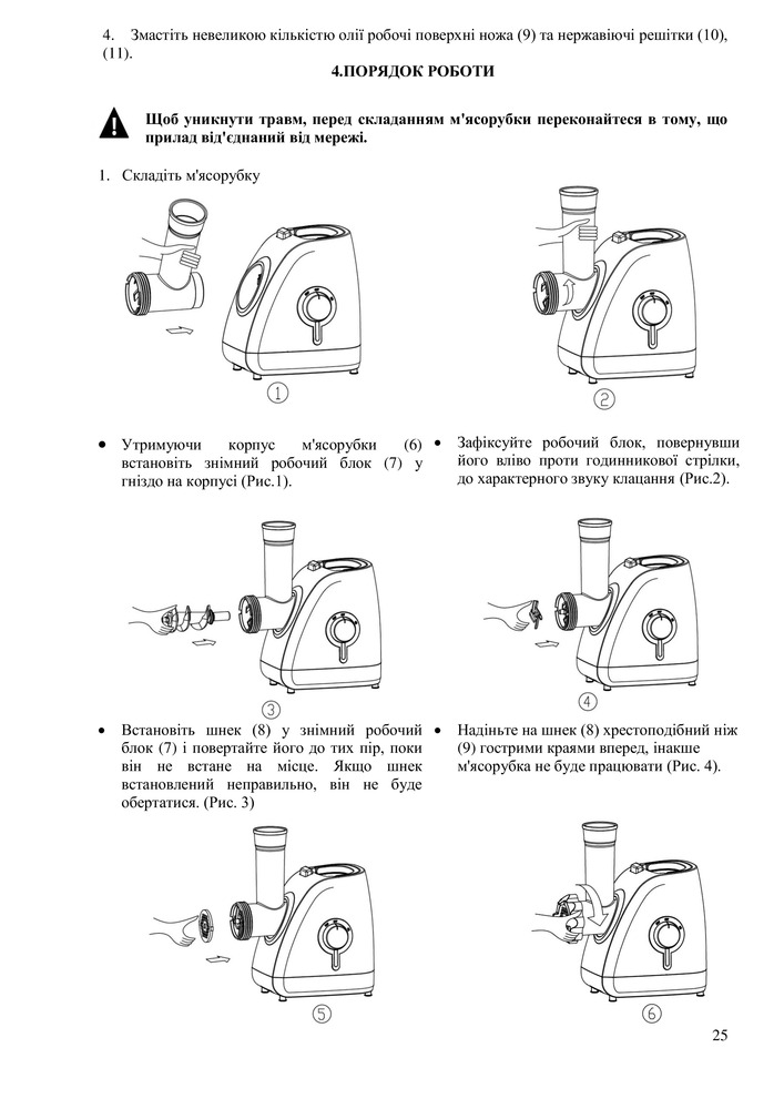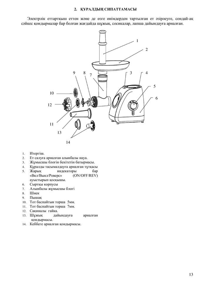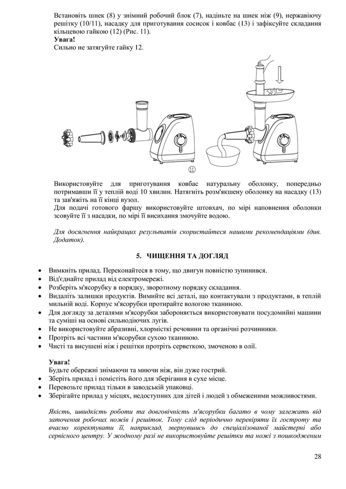 • Металлический мясоприемник и шнек