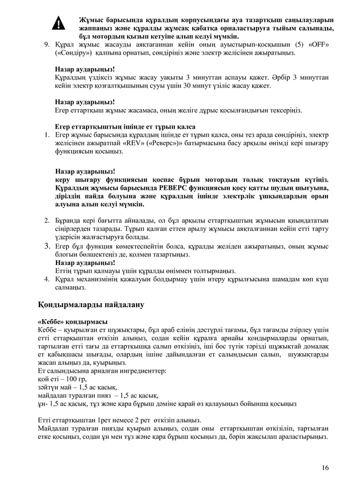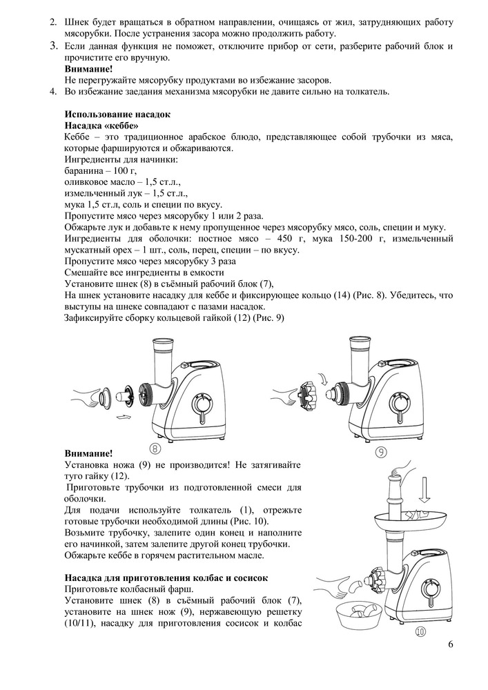 • Насадка для приготовления колбас и кеббе