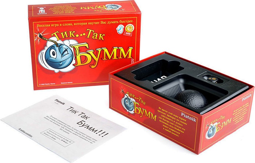 Piatnik Игра настольная «Тик... Так Бумм», издание 2016В данный момент этот товар отсутствует в продаже. Возможно, у нас найдется аналогичный или похожий товар здесь. Настольная игра «Тик...Так Бумм» замечательно разнообразит досуг веселой компании друзей или членов семьи. Игра предполагает наличие участников в количестве от 2 до 12 человек, а значит, ее можно использовать даже на небольших домашних вечеринках и праздниках. |