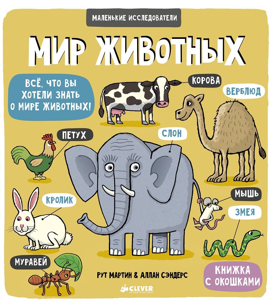 Открывайте окошки, чтобы узнать много интересных фактов о жизни животных. С этой весёлой книгой скучно точно не будет!