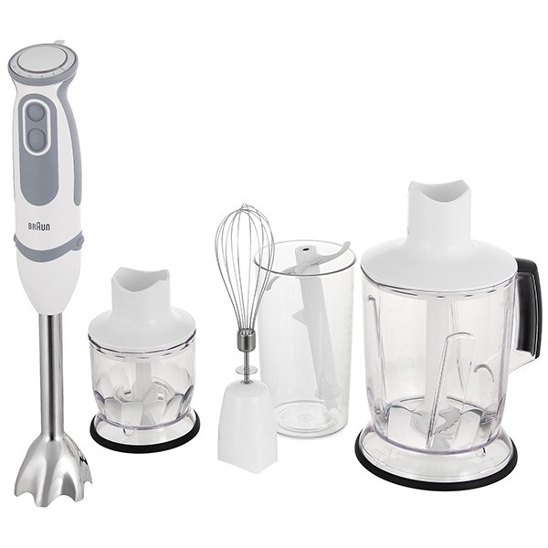 В комплекте множество насадок - большой и малый измельчитель, венчик для взбивания, приспособление для смешивания, а также нож для колки льда. Кроме того, устройство совместимо со многими другими кухонными инструментами от Braun.