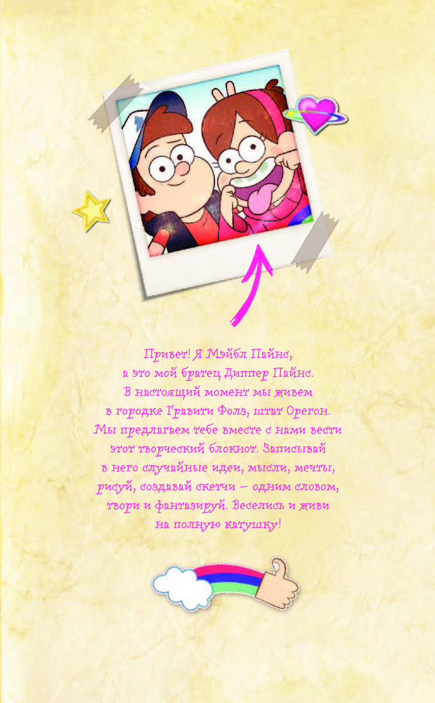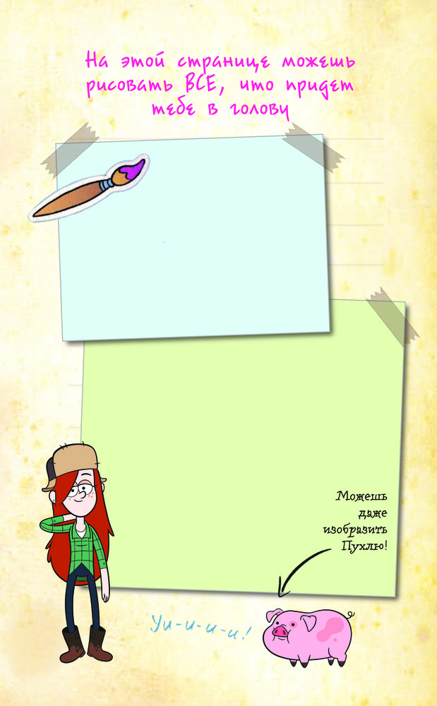 Я думаю, этот блокнот подходит не только для детей, но и для всех любителей Гравити Фолз разных возрастов. Подарила подруге на 18-летие (!), ей понравилось :) Внутри много интересных заданий, отсылок к мультику и вообще огромный простор для творчества.
