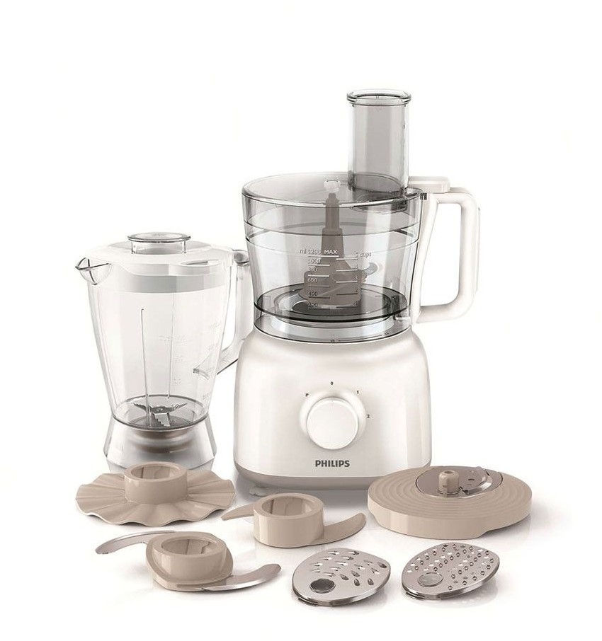 Кухонный комбайн Philips из коллекции Daily отличается компактным дизайном, оснащен чашей 1,2 л и блендером 1,75 л. В комплект также входят различные аксессуары для более эффективной работы. Готовить вкусные домашние блюда теперь так просто!