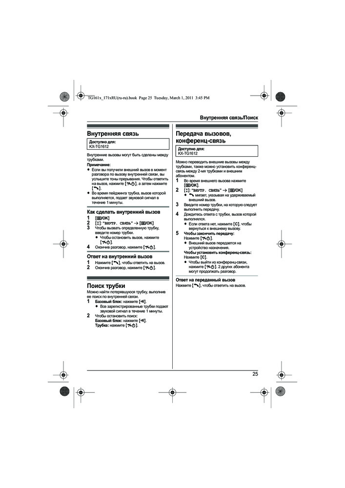 Телефон Рanasonic KX-TG1611 — беспроводная многофункциональная трубка. Модель имеет русифицированное меню и удобный интерфейс. Аппарат поддерживает определитель номеров АОН и Caller ID, записная книжка рассчитана на 50 контактов. На базовом блоке есть кнопка пейджинга, которая поможет быстро отыскать затерявшуюся трубку. В DECT-телефоне предусмотрена опция «будильник» с повторным звучанием сигнала.