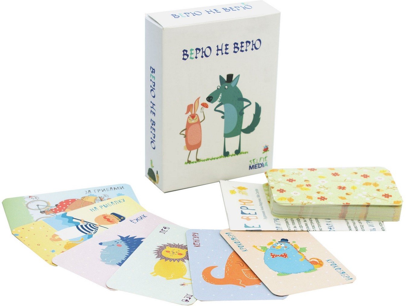 Selfie media Настольная игра «Верю не верю»В данный момент этот товар отсутствует в продаже. Возможно, у нас найдется аналогичный или похожий товар здесь. Настольная игра «Верю-не верю» создана на основе азартной карточной игры с аналогичным названием. Игра имеет те же правила, однако вместо стандартных карт с тройкой крести и валетом использованы карточки с изображениями милых и веселых животных. Внимательно ознакомившись с правилами, дети смогут приступить в игре. |
