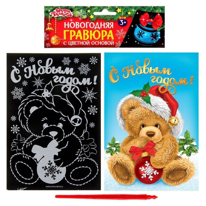 | Школа талантов Гравюра "Мишка" с цветной основой + штихель