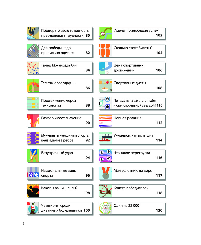 Мировой спорт в инфографикеВ данный момент этот товар отсутствует в продаже. Возможно, у нас найдется аналогичный или похожий товар здесь. Серия: Мир в инфографике Если вам нужна книга, в которой на каждый вопрос о спорте есть ответ, то вам больше не надо искать — вы держите ее в руках. На страницах вы найдете все что угодно: от танцевальных движений Мохаммеда Али до уровня децибел звуков, издаваемых современными теннисистками, — здесь все подробно описано, изображено и проанализировано. Более 100 потрясающих, невероятных фактов о спорте! Издание представляет уникальные, остроумные и неожиданные факты о каждом виде спорта — от бадминтона до каратэ, от крикета до хоккея. |