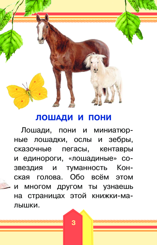 Лошади и пониВ данный момент этот товар отсутствует в продаже. Возможно, у нас найдется аналогичный или похожий товар здесь. Серия: 100 умных книжек для малышей и малышек Лошади, пони и миниатюрные лошадки, ослы и зебры, сказочные пегасы, кентавры и единороги, «лошадиные» созвездия и туманность Конская голова. Обо всём этом и многом другом можно узнать на страницах этой книжки-малышки. |
