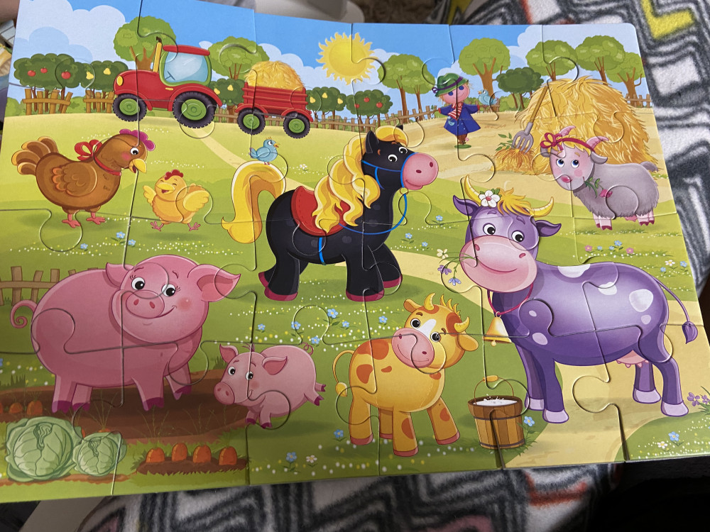 Мягкий пазл «Ферма»-очень яркий, красочный, интересный,веселенький. Внучка играет и собирает с удовольствием!