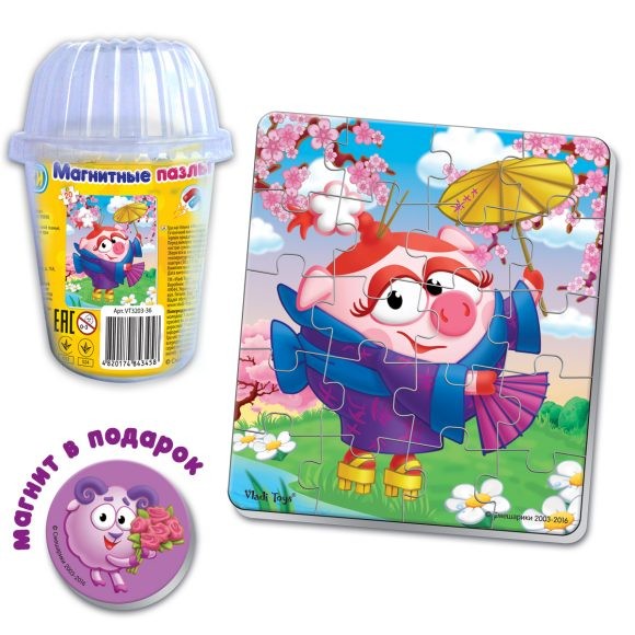 Vladi Toys Мягкий магнитный пазл «Смешарики - Нюша», 20 элементовВ данный момент этот товар отсутствует в продаже. Возможно, у нас найдется аналогичный или похожий товар здесь. Серия: Смешарики Магнитный пазл «Смешарики» понравится любителю мультфильма про забавных зверят. Из 20 элементов набора ребенок создаст изображение озорной свинки Нюши, выполненное в японском стиле. Магнитные пазлы изготовлены из вспененного материала на магнитной подложке; они приятные на ощупь и легко собираются в полноценную картинку. Детали пазла упакованы в оригинальный пластиковый стаканчик, в котором их очень удобно хранить. Сборка магнитного пазла положительно повлияет на усидчивость ребенка, сформирует понятие формы и размера, а так же образное и логическое мышление. |