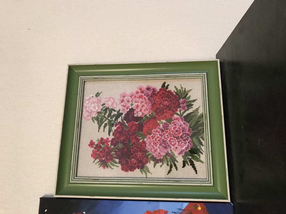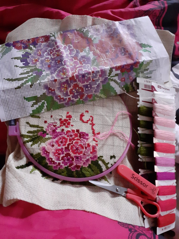 Вне всякого сомнения отличный набор. Уже вышила Ежевику от "Риолис", вышиваю Яблоки, теперь вот Гвоздику... Канва 14, ниточки шерстяные, сама канва из винтажной мешковины... ОТЛИЧНО!!!