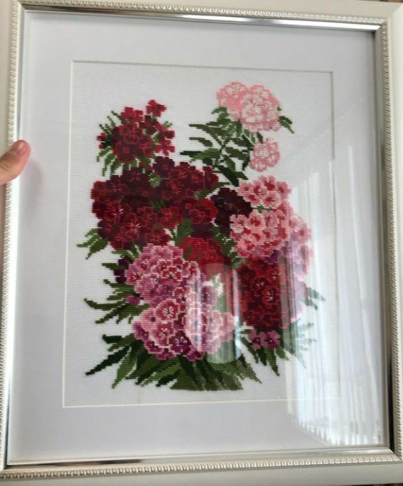 Вышивать одно удовольствие: схема четкая и хорошо проработанная, нитки яркие и приятные, не рвутся. Гвоздика получилась объемная, как живая.