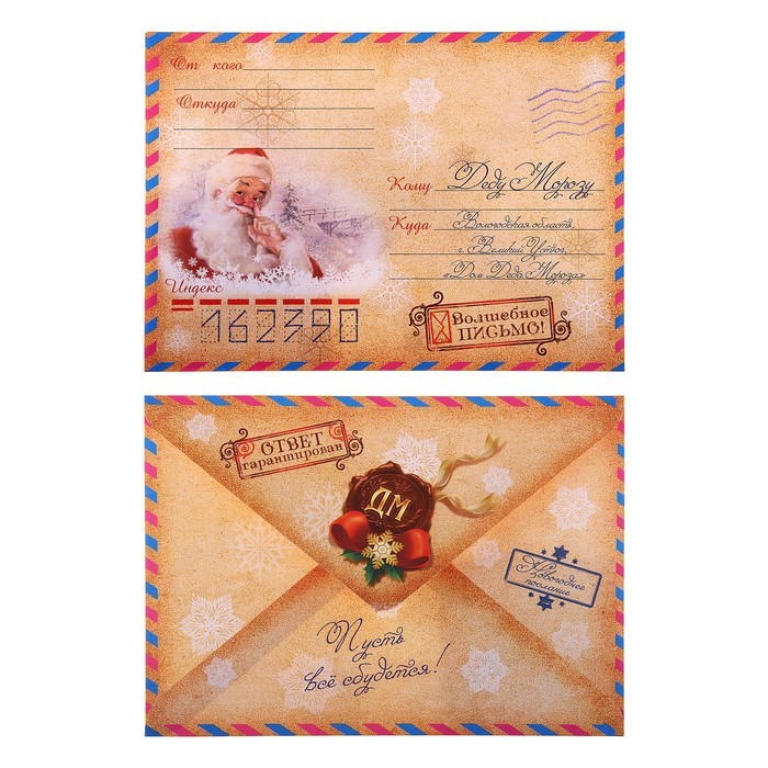 Письмо новогоднее с конвертом «Дедушке Морозу»В данный момент этот товар отсутствует в продаже. Возможно, у нас найдется аналогичный или похожий товар здесь. У каждого есть заветное желание. Как узнать Деду Морозу о том, что же вы мечтаете получить в подарок. У нас есть решение! Письмо новогоднее с конвертом "Дедушке Морозу" в эксклюзивном дизайне донесёт ваше послание, и оно непременно исполнится. |