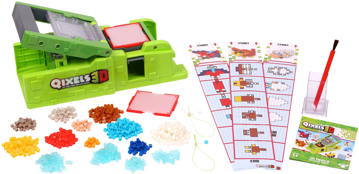 Игровой процесс выглядит следующим образом: необходимо выбрать лекала из имеющихся в комплекте или придумать свой собственный проект строительства. Затем открыть крышку 3D принтера Qixels и на нижнюю часть устройства (силиконовую пластинку) нанести кисточкой слой воды, а верхнюю сторону покрыть кубиками. Только нужно быть очень внимательным, ведь для первого уровня-фундамента стоит использовать лишь специальные крупные пластины, а вот уже дальше выстраивать задуманную фигурку можно из одиночных кубиков. Устанавливая каждый новый "этаж" на верхнюю часть, нужно не забывать о смачивании водой. После этого, нижняя и верхняя стороны 3D принтера Квикселс совмещаются и слегка сдавливаются, как-будто это пресс. Подобная последовательность действий - залог того, что готовая фигурка будет прочной, надежной и не сломается во время игры. После окончания работы нужно обязательно дать высохнуть смоченной водой фигурке.