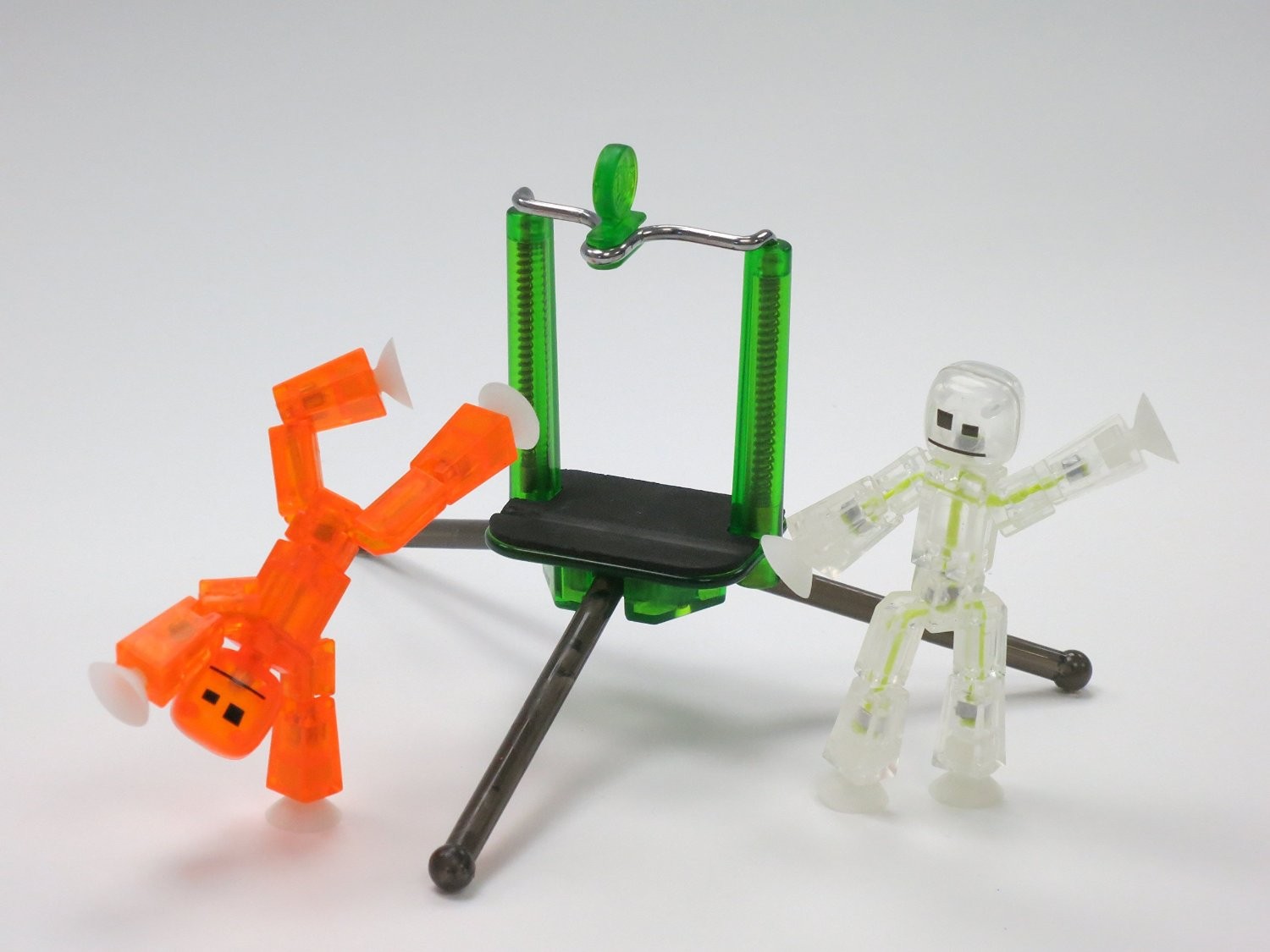 Снимать ролики еще не пробовали, поэтому делюсь первыми общими впечатлениями о наборе. Человечки достаточно примитивные, их подвижность обеспечивается резиночками, проходящими внутри всех частей тела (раньше были такие дешевенькие пластмассовые игрушки), поэтому различных положений не так уж и много. Штатив подойдет для любой диагонали телефона, и его можно использовать в качестве подставки при просмотре видео, например. Конечно, набор таких денег не стоит.