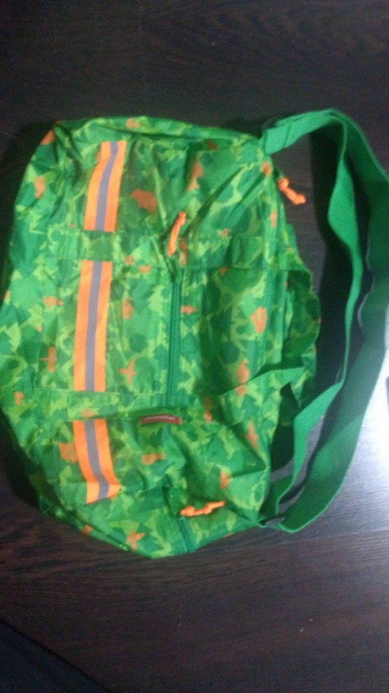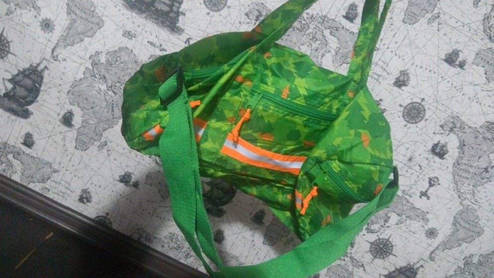 Сшита она из плащевки типо ткани из которой ветровки шьют. Брала ребенку 10 лет в поездку, маленькая. Но времени ходить по магазинам искать уже не было, пришлось брать. Нет у нее жёсткого дна, нет уплотнения на ручках для удобной переноски. Складывается она в кармашек внутренний. Плащевка в один слой, на дне два.