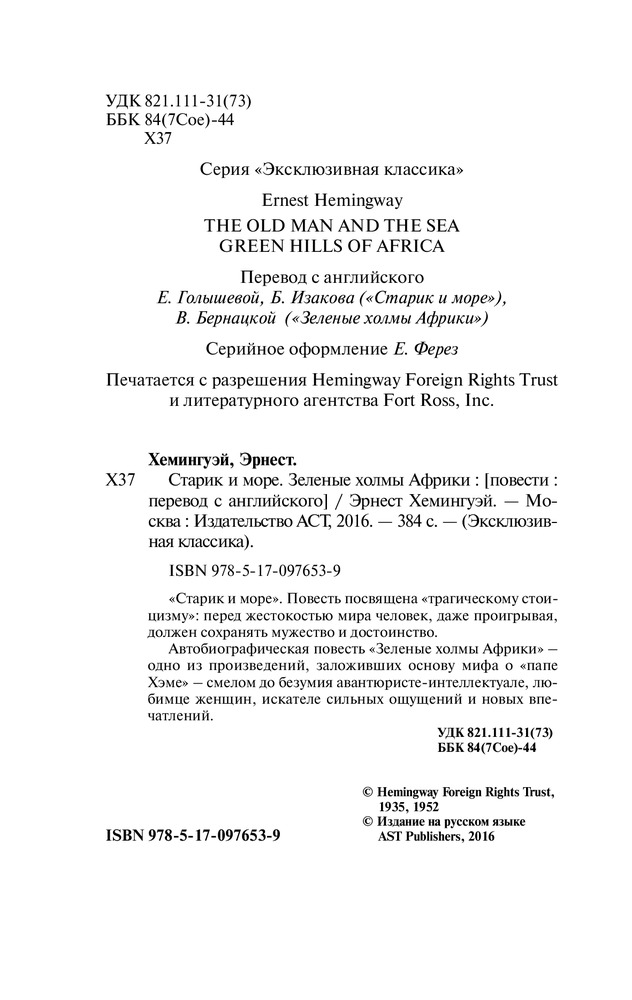 Старик и море. Зеленые холмы Африки+72 содержание качество книги обложка интересный текст читабельность