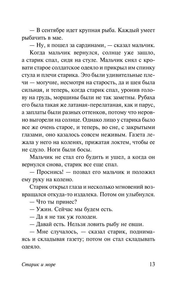 старик и море в укороченном виде, полный перевод больше чем 100 страниц.