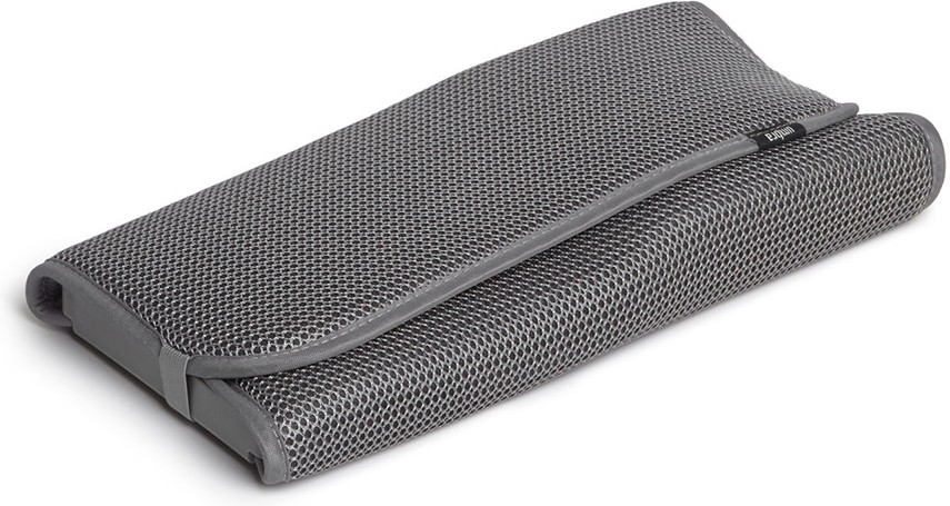 Я очень довольна,ставить стационарную сушку на рабочую поверхность гарнитура нет места, поэтому использовала полотенца или поднос, которые потом можно убрать. А этот коврик очень стильный, крышки от кастрюлек, тарелки, доски разделочные хорошо держит, можно компактно разместить много посуды для сушки. И смотрится он на кухне очень симпатично. Его можно стирать с машинке. Брала серый.
