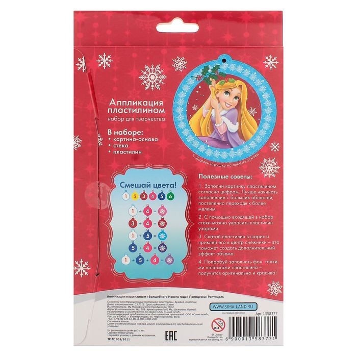 | Disney Аппликация пластилином «Волшебного Нового года. Рапунцель», 6 цветов пластилина по 10 гр