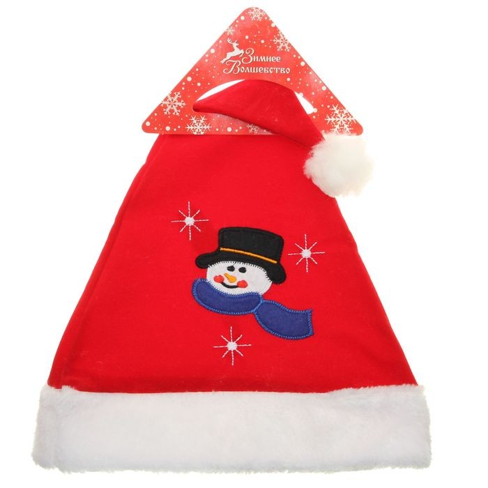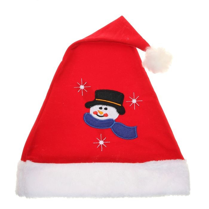 Колпак сшит из красного бархата, к нему липнут нитки и прочее. Внутренние швы не оверложены, но при этом аппликация выполнена качественно. Ткань не рыхлая, так что колпак не ломается, а бодро стоит на голове и картинка прекрасно видна. Если бы внутри аккуратно обработали можно было бы и 5 поставить. Размер соответствует 56-57 см обхвата головы. Заказала несколько штук друзьям для прикола. Деваться некуда - буду дарить.