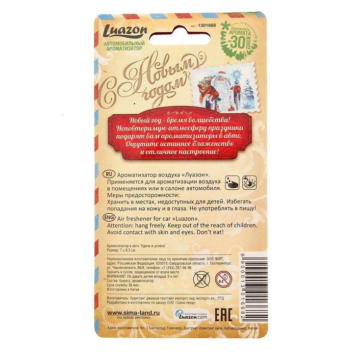 | Luazon Ароматизатор в авто «Удачи и успеха», горький шоколад