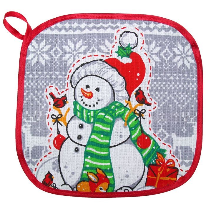 Яркая и красочная прихватка с эксклюзивным новогодним дизайном сшита из качественных и экологически чистых материалов, а ещё: