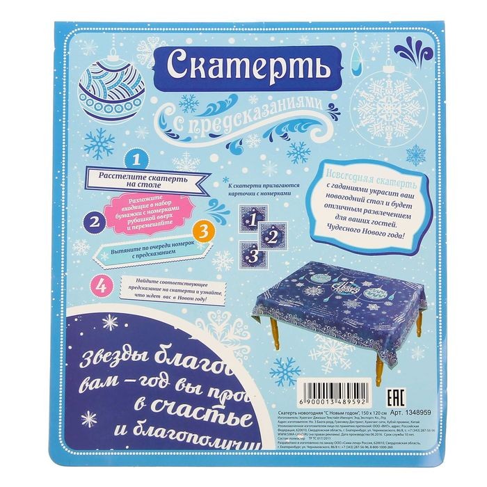 Скатерть красивая, интересная. Брала такую в прошлом году. Стол смотрится очень празднично! Создает новогоднее настроение! Плюс, классные предсказания на скатерти. Всем очень понравилось!!! В этом году заказала в подарок, Флипушка, как всегда на высоте, доставили быстро, аккуратно все упаковано. Особое спасибо, персоналу! Всегда вежливо, заботливо обслуживают на Флипе!