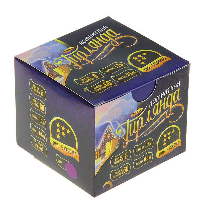 | Luazon Гирлянда «Бахрома», 1,2х0,6 м, LED-60-220V, фиолетовый, нить темная, 8 режимов